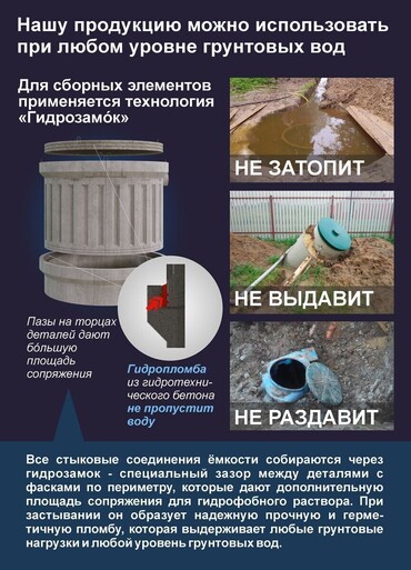 Наши септики универсальны в своем роде и многофункциональные, а так же подходят для высоких грунтовых вод и большого кол-во потребителей.